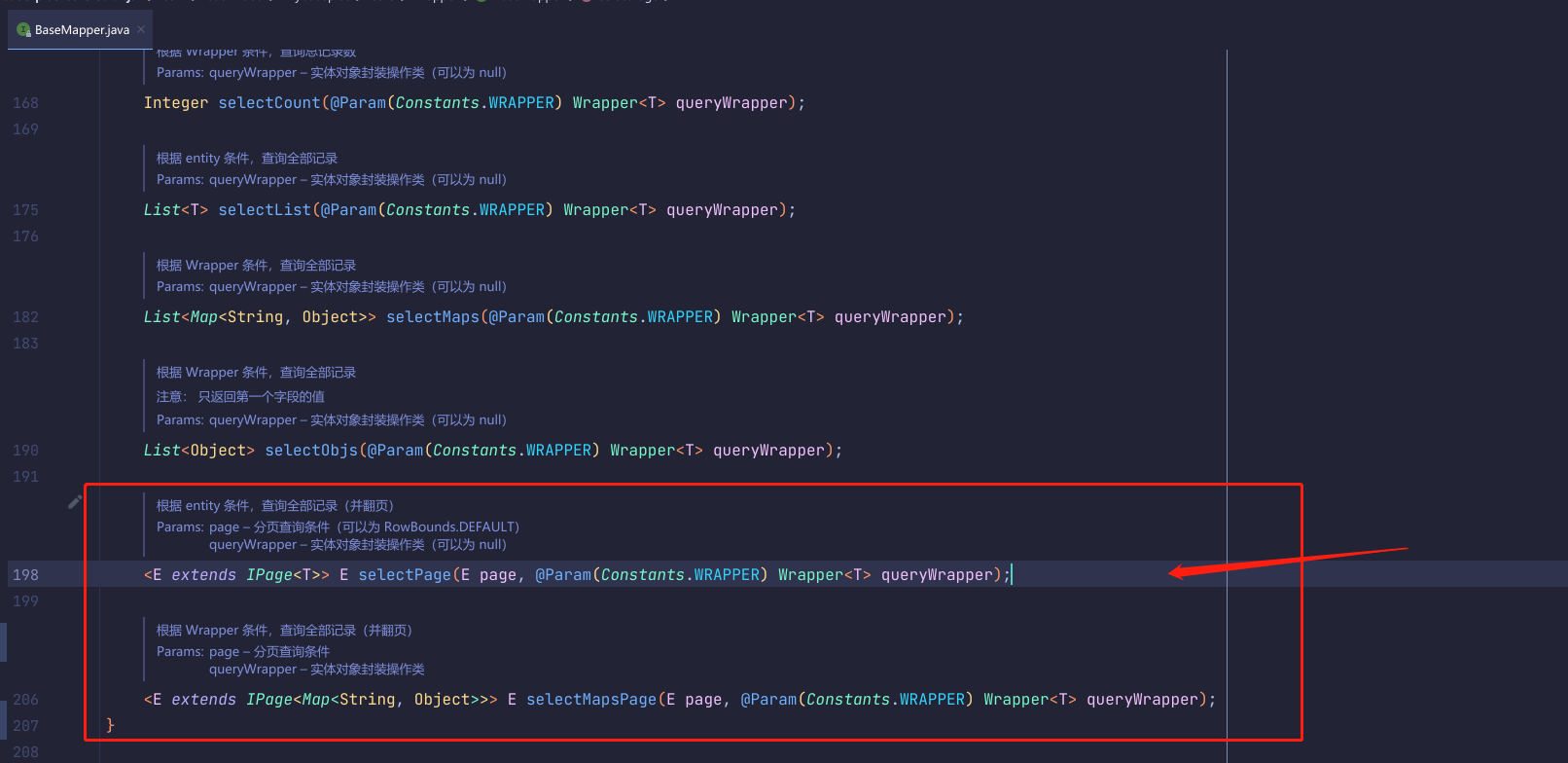 MP 的 Wrapper 提供了两种分页查询的方式,源码如下: