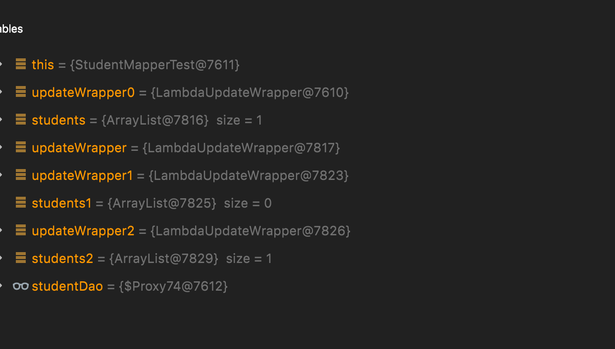 List<Student> students = studentDao.selectList(updateWrapper0);