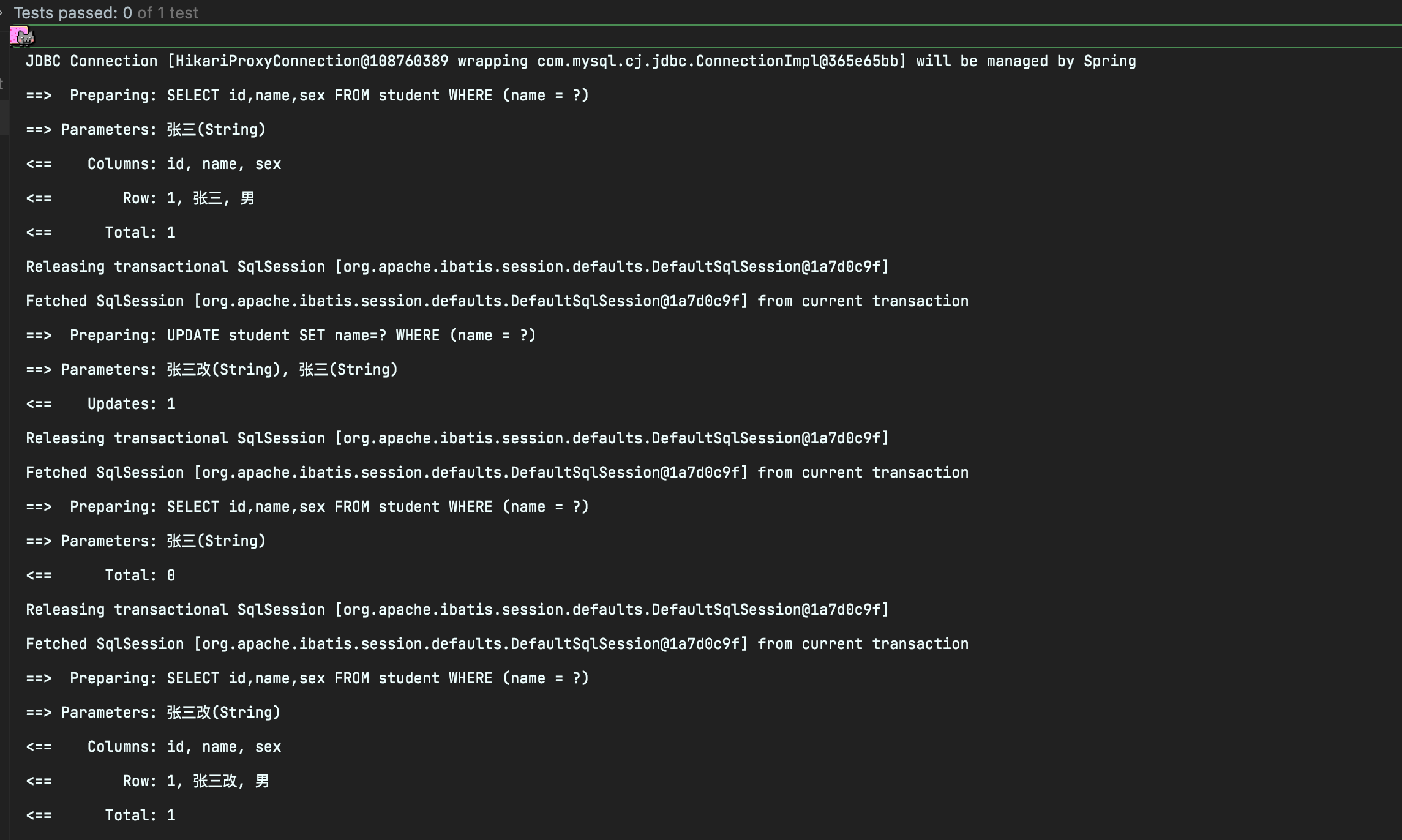 LambdaUpdateWrapper<Student> updateWrapper1 = new LambdaUpdateWrapper<>(); updateWrapper1.eq(Student::getName,"张三"); List<Student> students1 = studentDao.selectList(updateWrapper1);
