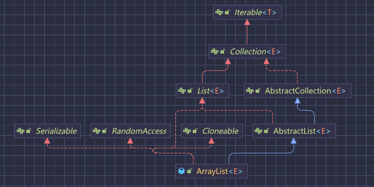 public class ArrayList<E> extends AbstractList<E> implements List<E>, RandomAccess, Cloneable, java.io.Serializable { private static final long serialVersionUID = 8683452581122892189L;